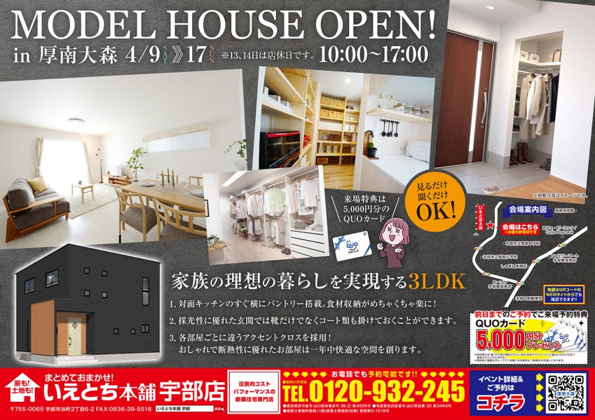 【宇部】家族の理想の暮らしを実現する3LDK MODEL HOUSE OPEN!