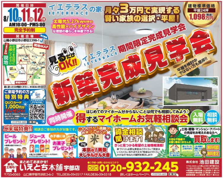 山陽小野田市にて平屋の新築完成見学会を開催決定しました!
