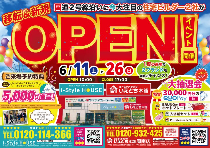いえとち本舗周南店移転リニューアルOPEN!☆i-style Houseと共同開催☆