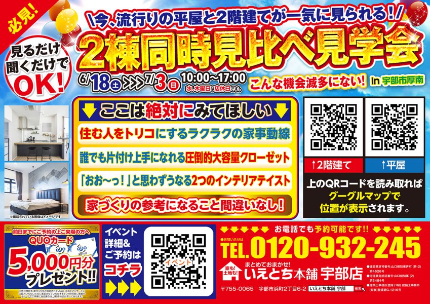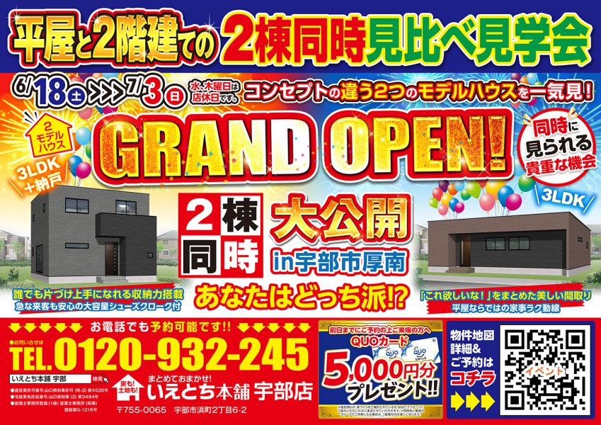 【宇部市厚南】平屋と2階建て☆大人気モデルハウス2棟同時見学会
