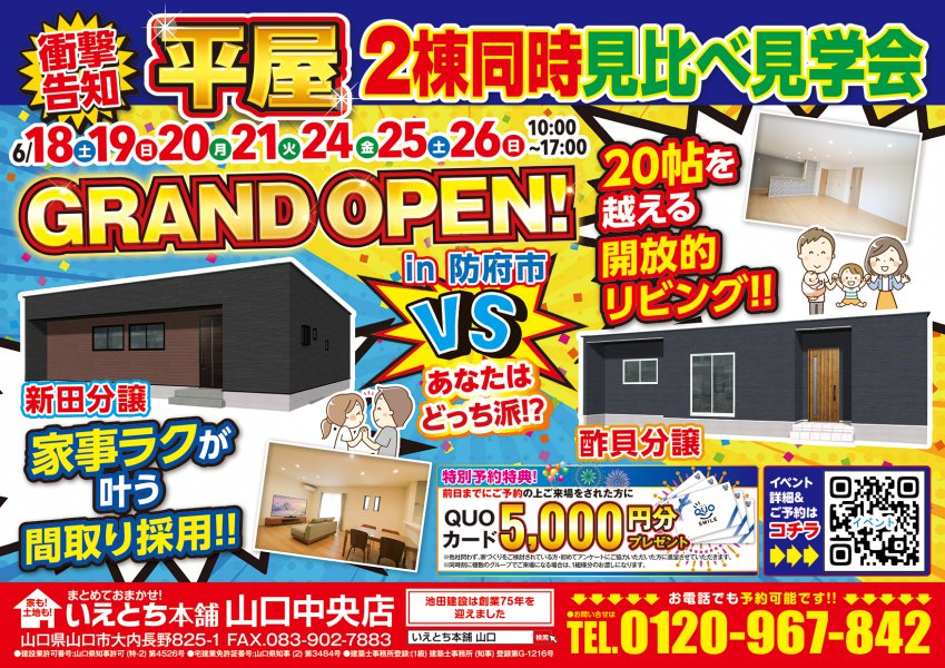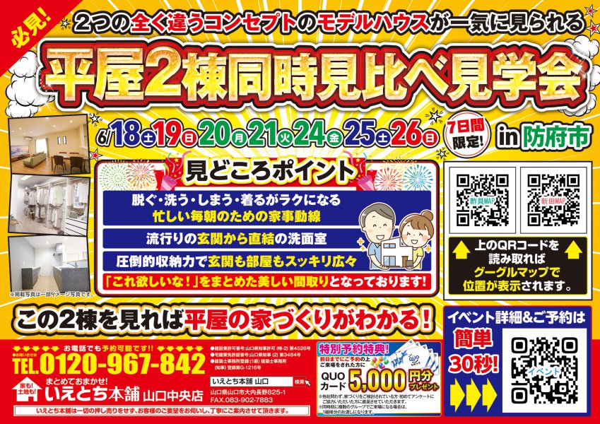 【防府エリア】平屋祭り!新田・酢貝にて2棟の平屋見学会開催!