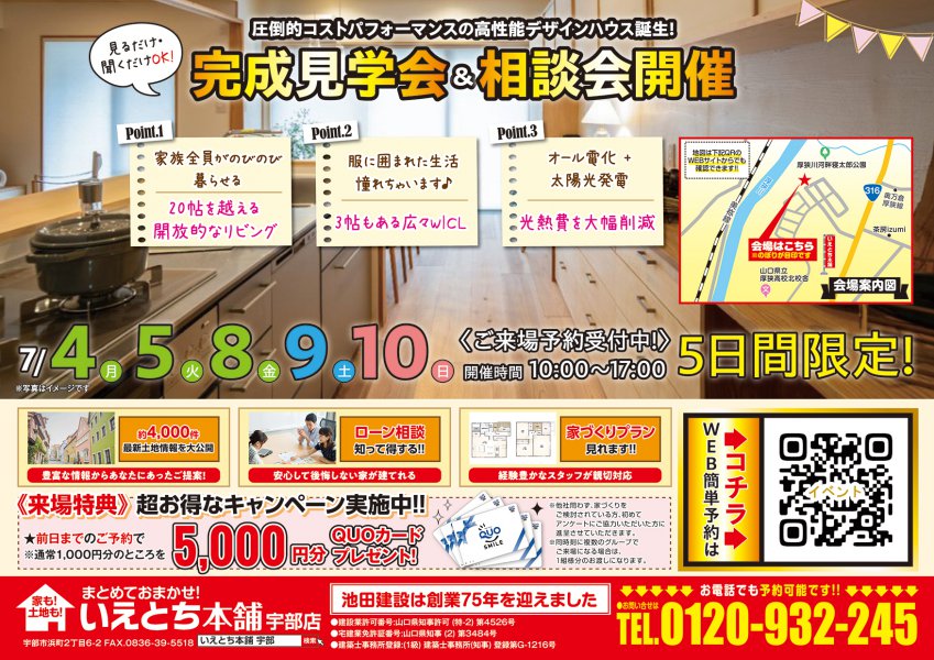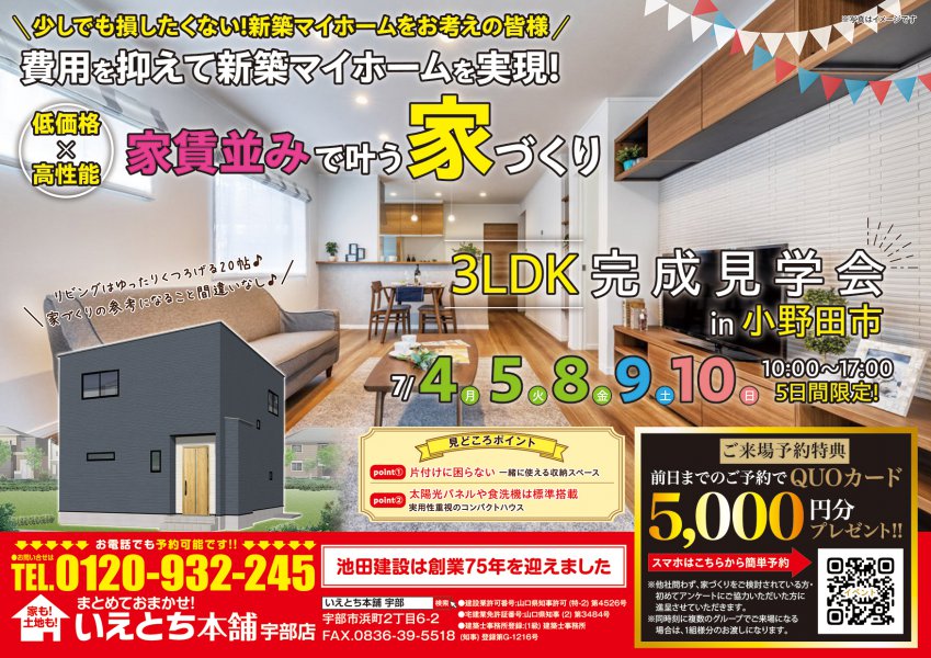 【小野田】費用を抑えてマイホームを実現!家賃並みで叶う家づくり 3LDK完成見学会!