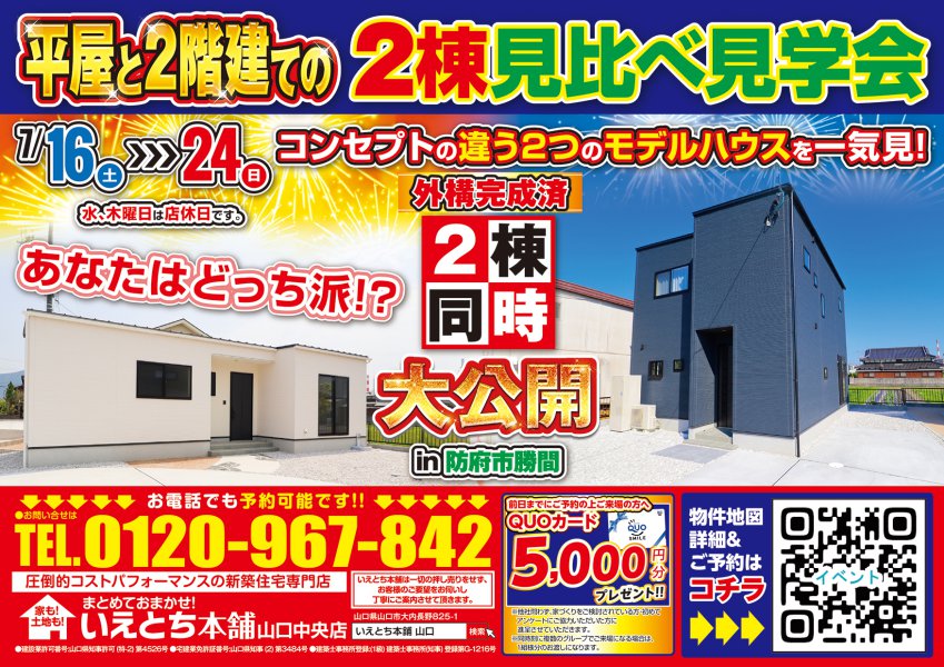 【防府】外構完成済み!仕上がった平屋と2階建てと同時に見れるチャンス!