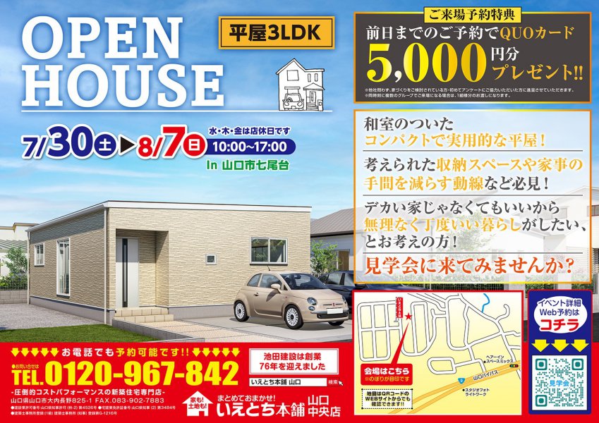 【山口】七尾台に暮らしに丁度いい3LDK平屋が期間限定OPEN!