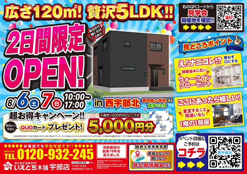 【西宇部北】1階にも便利な一部屋とさらにWICLまで付いた満足度MAXの5LDKが2日間限定OPEN!