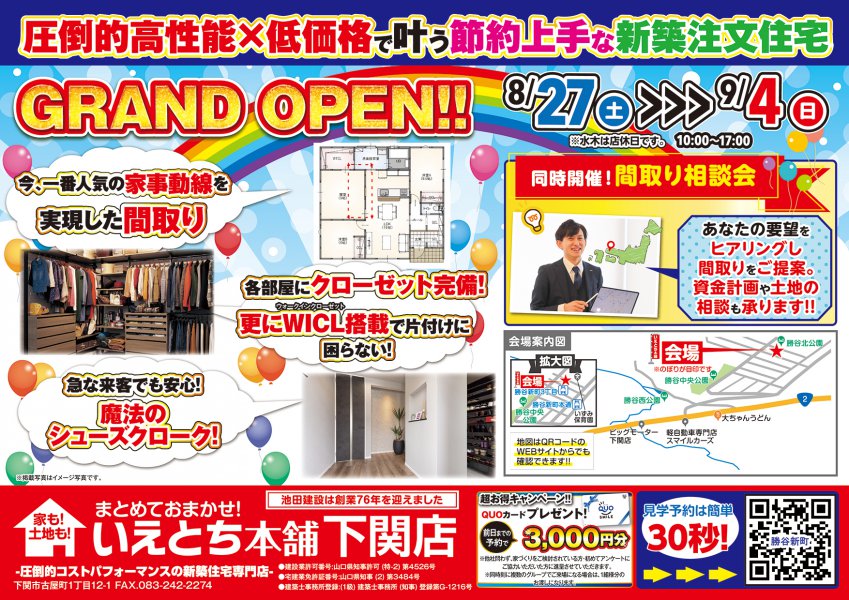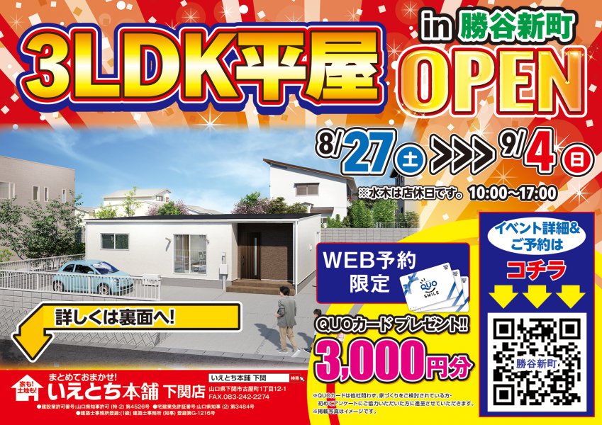 | 場所 | 下関市勝谷新町3丁目10番17 (MAP) | 時間 | 10:00~17:00 |