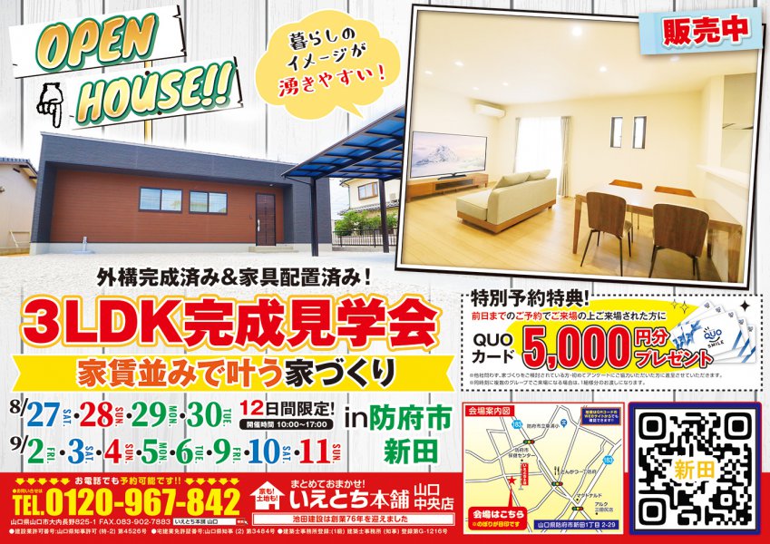 【防府市新田】外構完成&家具配置済み!平屋暮らしをリアルに体感できる3LDK見学会