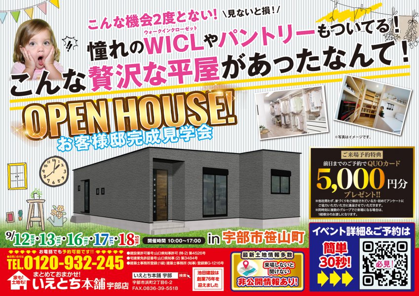 【宇部市笠山町】こんな機会2度とない!憧れのWICLやパントリーもついた3LDKお客様邸完成見学会!