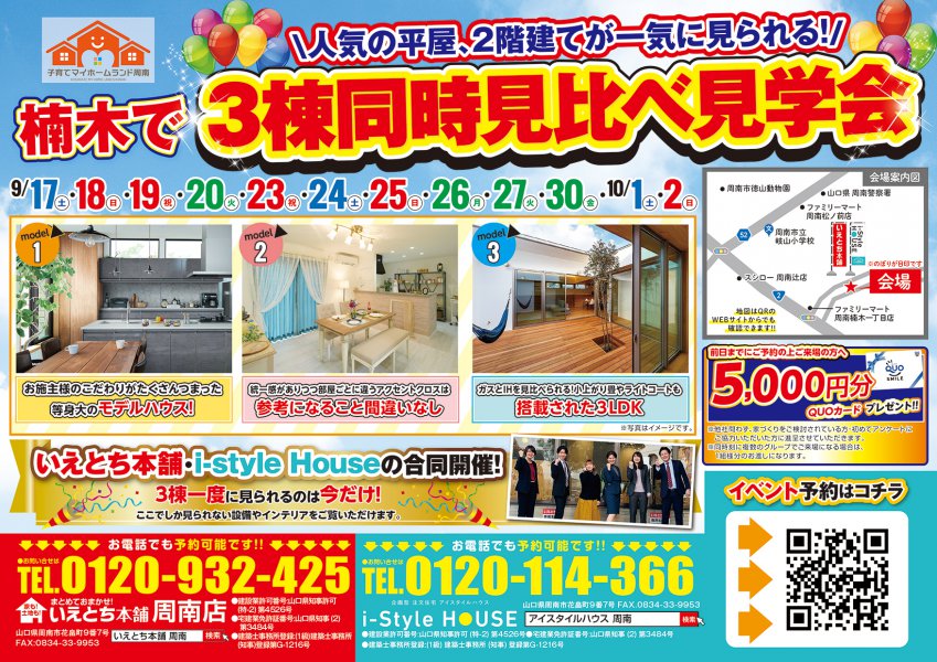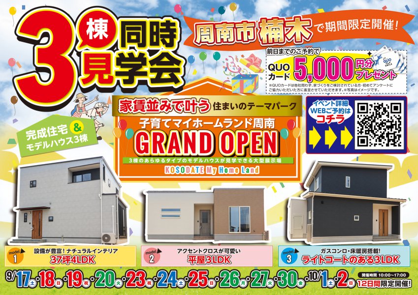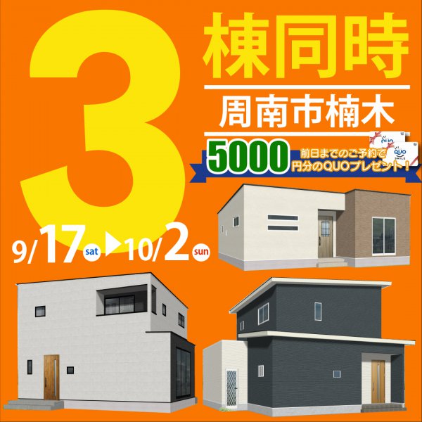 【周南市楠木】人気エリアで3棟同時見学会 GRAND OPEN!