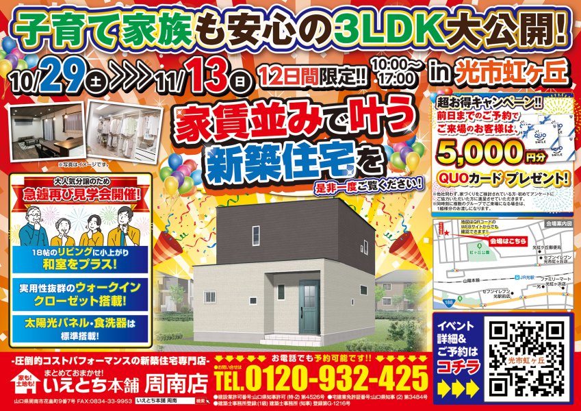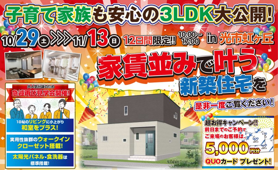 【光市虹ヶ丘】ラストチャンス!小上がり和室のある3LDK見学会◎