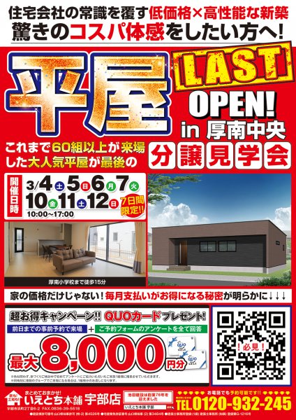 【宇部市】LAST OPEN!家賃並みで3LDKの平屋が持てる秘密を大公開!