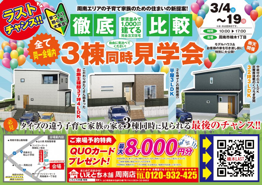 【周南市楠木】全て同一会場内!自由に見比べてください!!3棟同時見学会