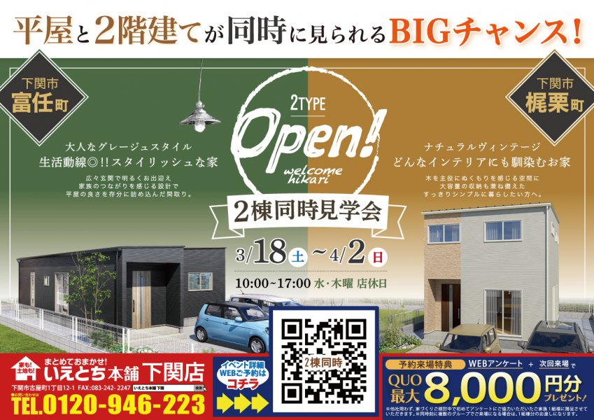 【下関市】2棟同時!平屋も2階建も見れるBIGチャンス!