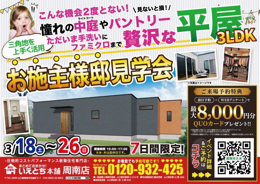 【周南市】こんな機会2度とない!見ないと損な贅沢平屋3LDK