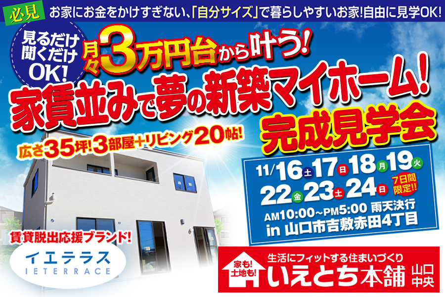 【山口市吉敷赤田】圧倒的に暮らしやすい3LDK完成見学会