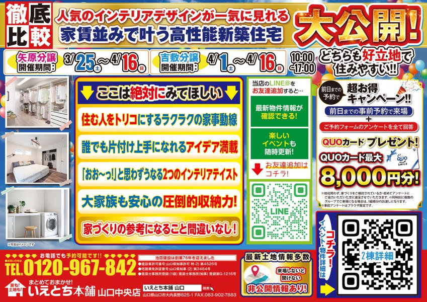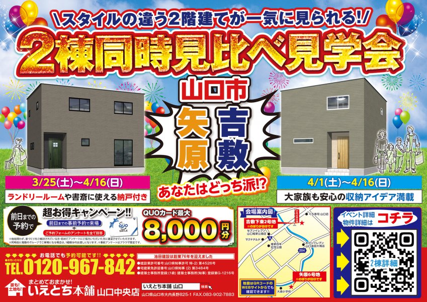【山口市】矢原と吉敷の好立地に2階建OPEN!スタイルの違う分譲を同時見学のチャンス!