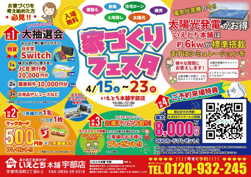 【宇部店】来場特典盛りだくさんの住宅相談会!無料大抽選会も開催!