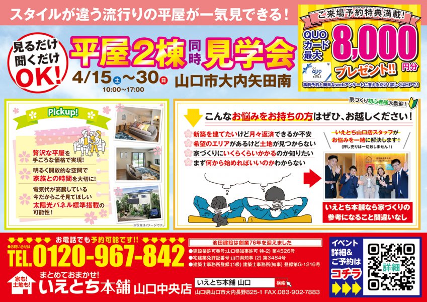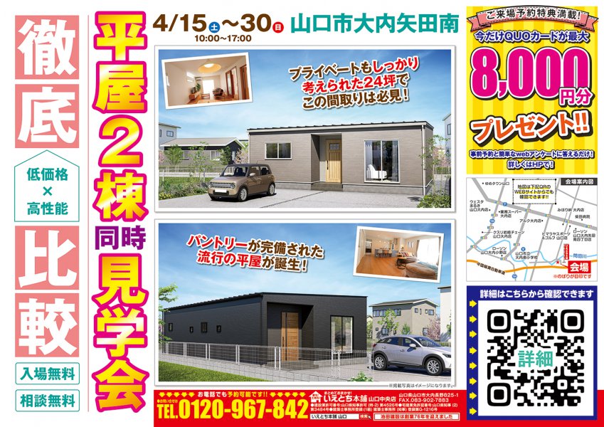 【山口市】大内矢田南で平屋2棟OPEN!インテリアの違いが堪能できる見学会