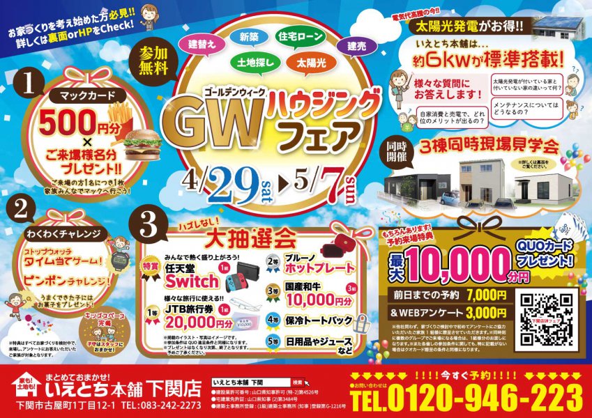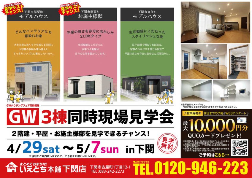【下関店】来場特典盛りだくさんGWハウジングフェア 同時開催3棟同時見学会