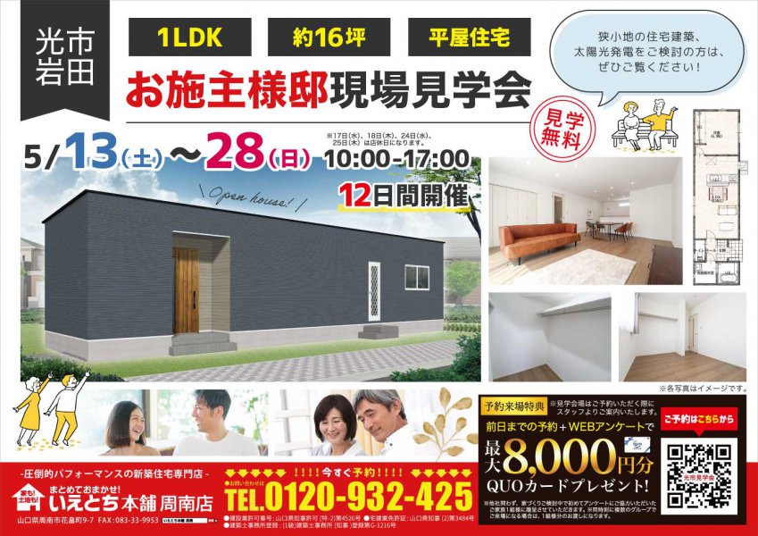 【周南店】光市岩田 平屋1LDKお施主様邸現場見学会