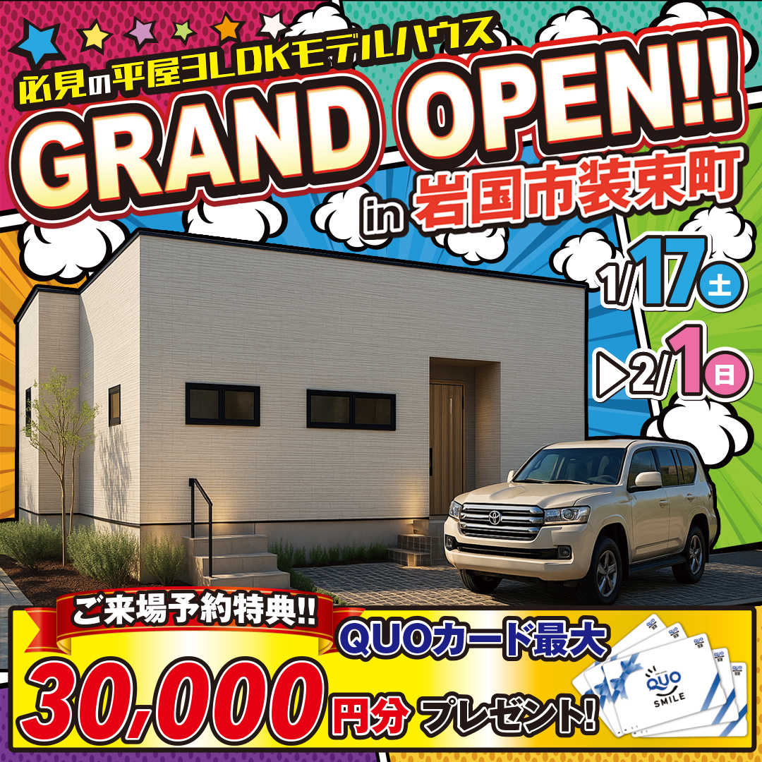 【岩国市装束町】家事ラク・収納・空間設計…リアルに役立つ工夫が詰まった3LDK平屋見学会!