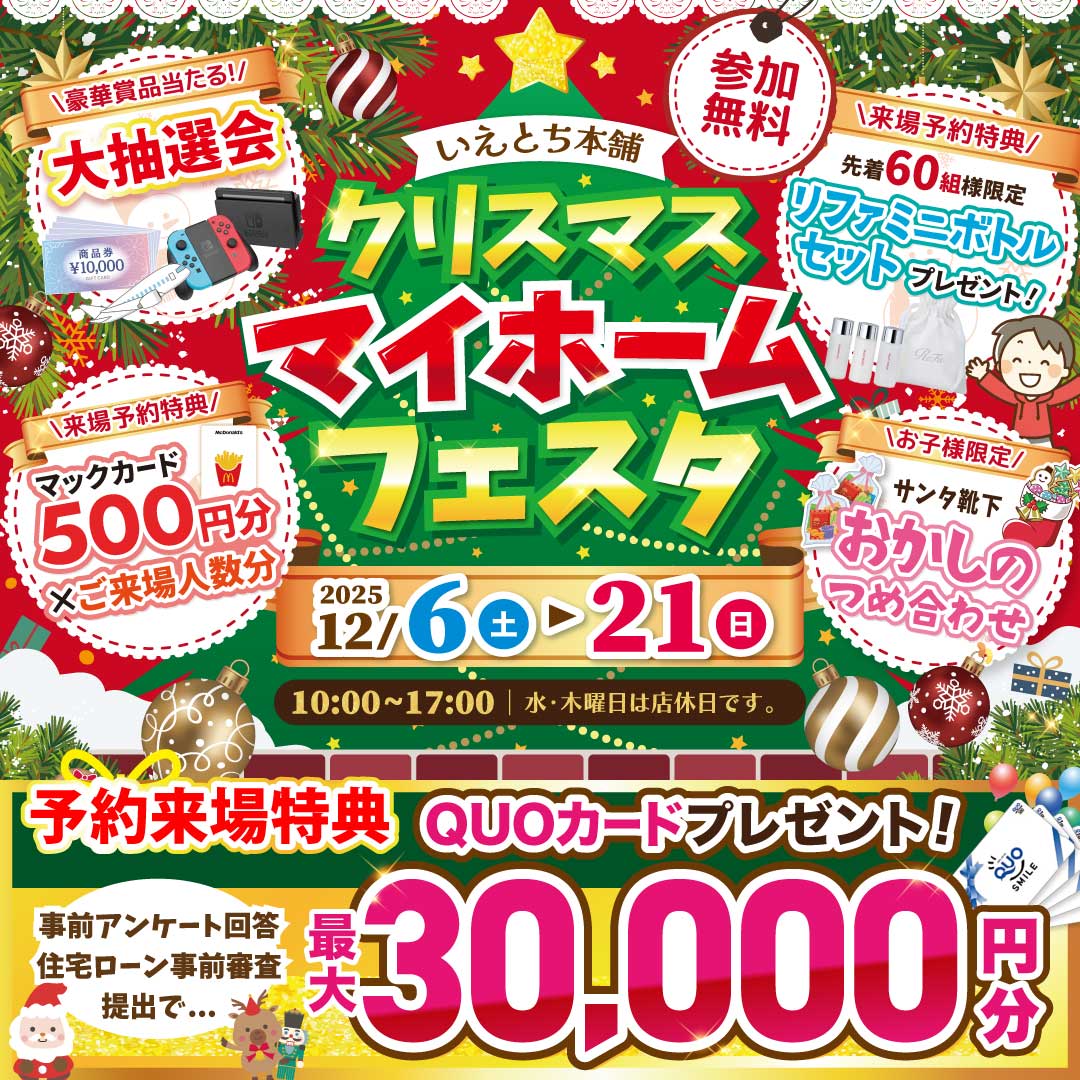 ご来場特典が熱い!冬だけのクリスマスマイホームフェスタ!|周南店