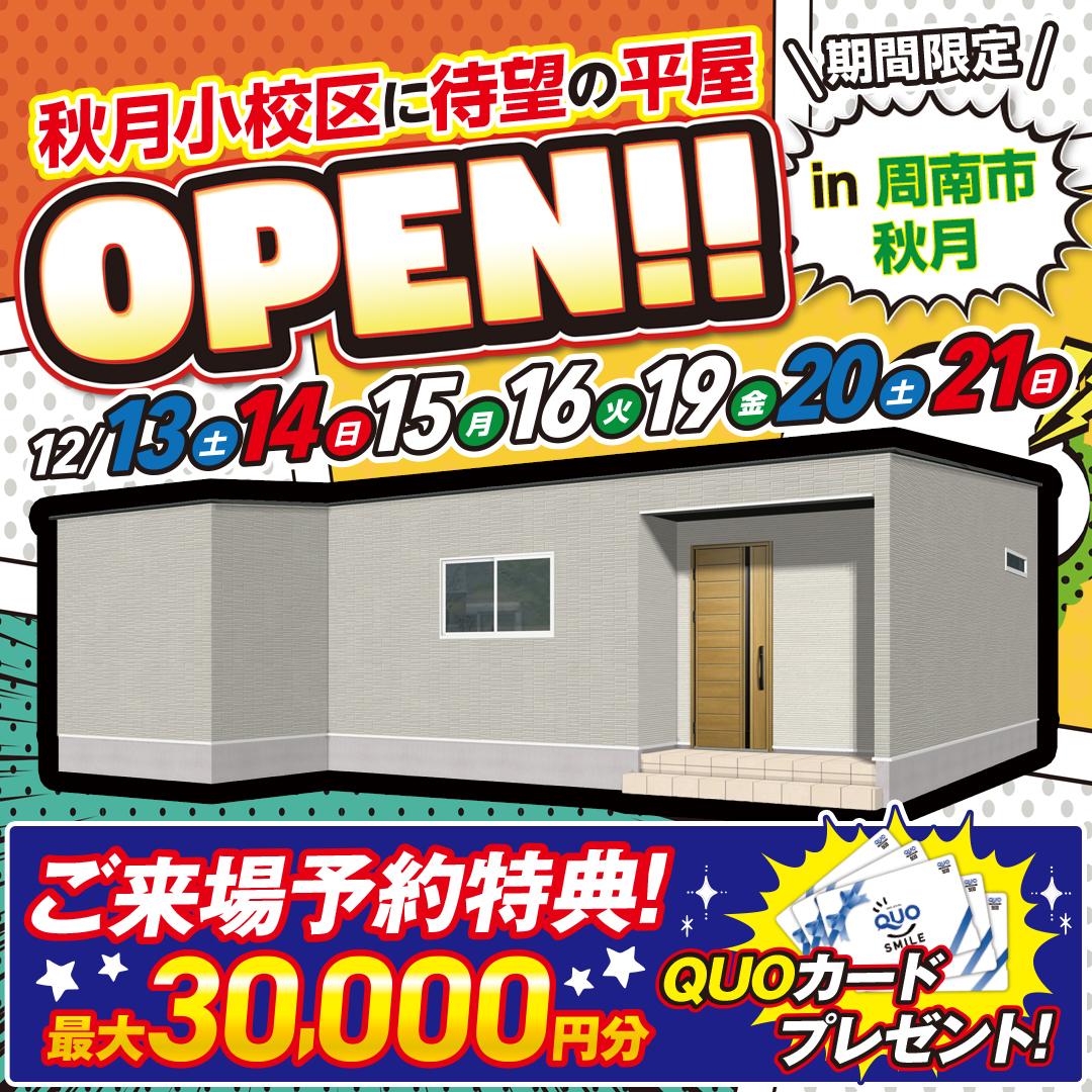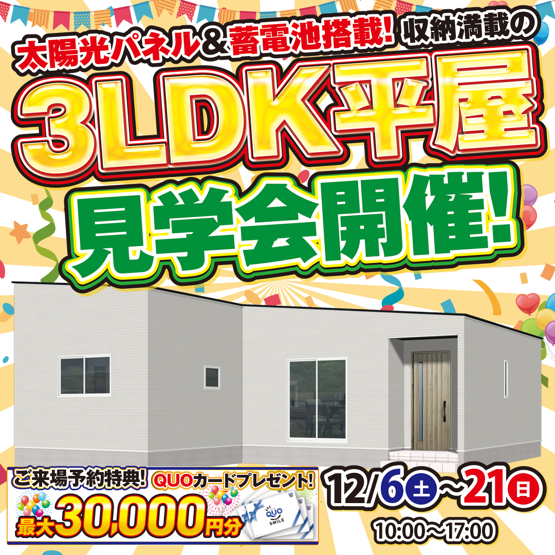 【光市宮ノ下】ちょうどいいサイズ×広々リビング!24坪の快適3LDK見学会開催