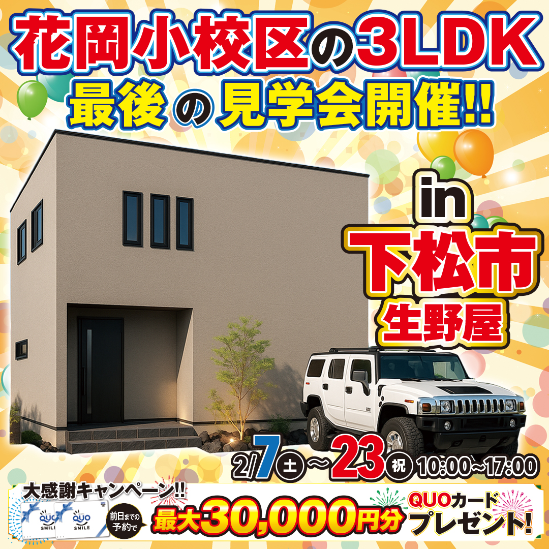 【下松市潮音町】収納で暮らしが整う ブラック外観が映える2階建て注文住宅見学会