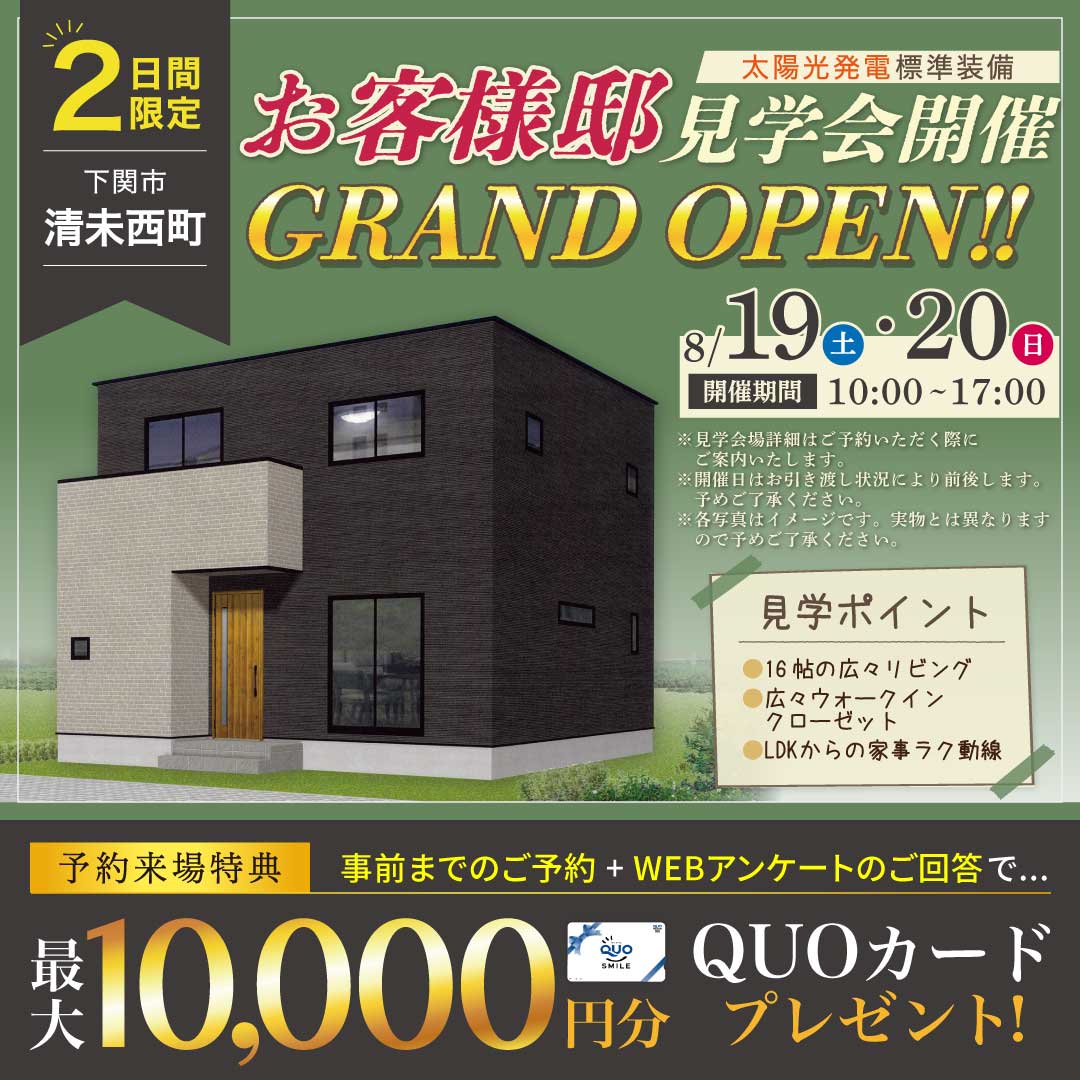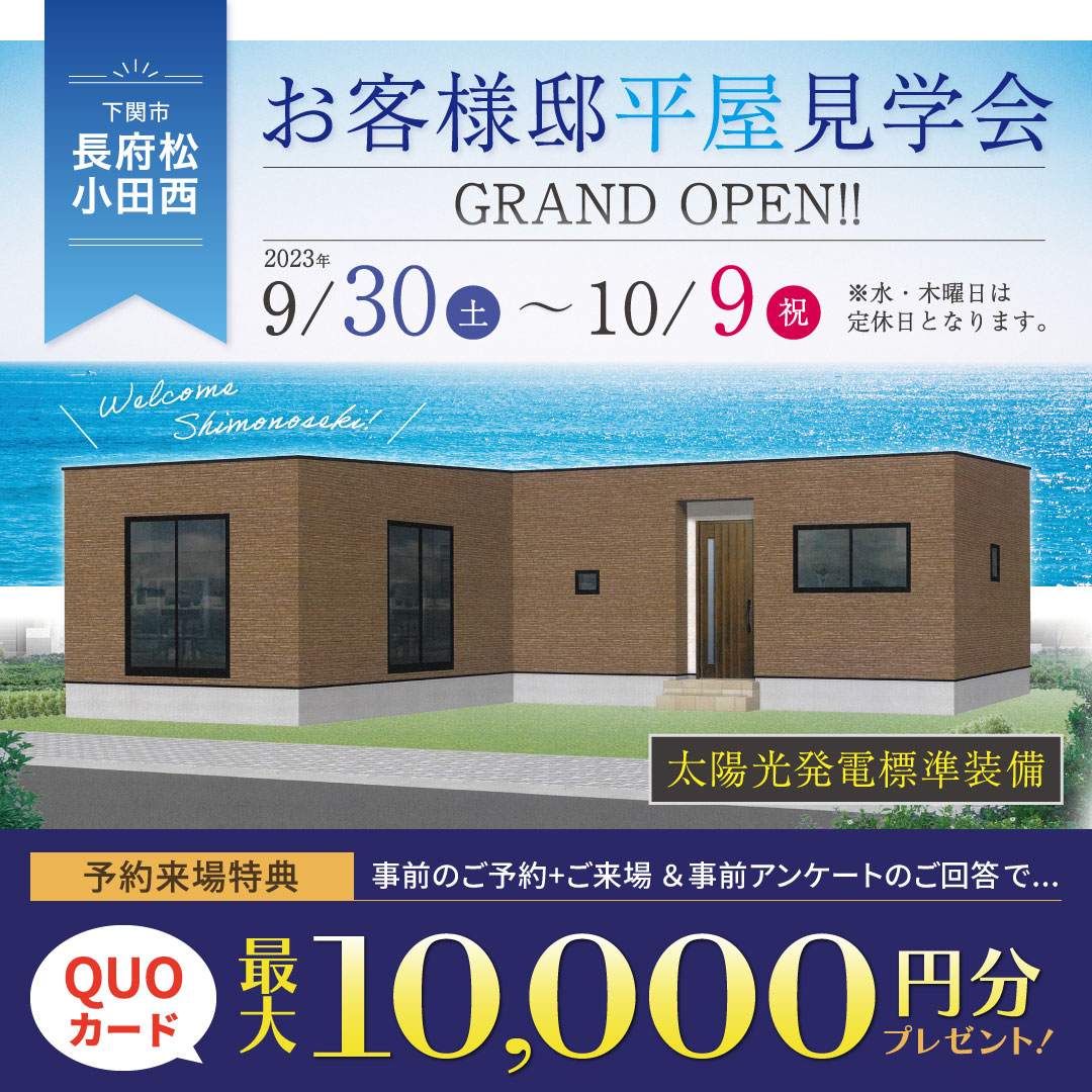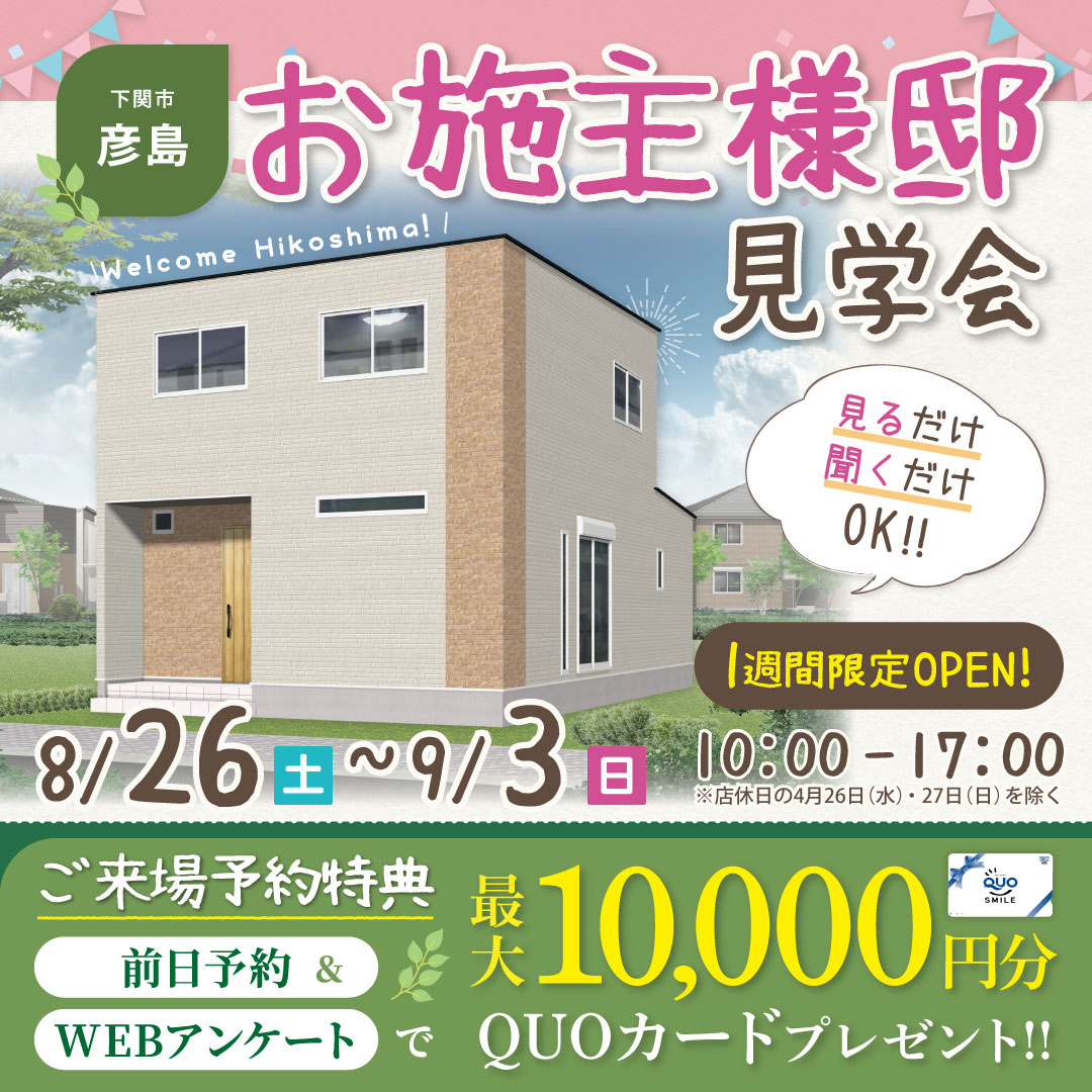 【下関店】大学町&安岡2棟同時見学会 来場予約でクオカード1万円分プレゼント!