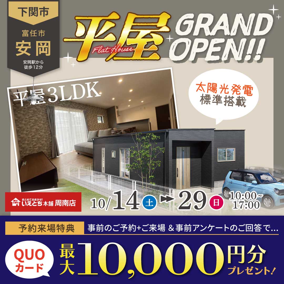 【下関店】安岡平屋見学会!家具付きでリアルな暮らしを体験♪来場予約でクオカード1万円分プレゼント!
