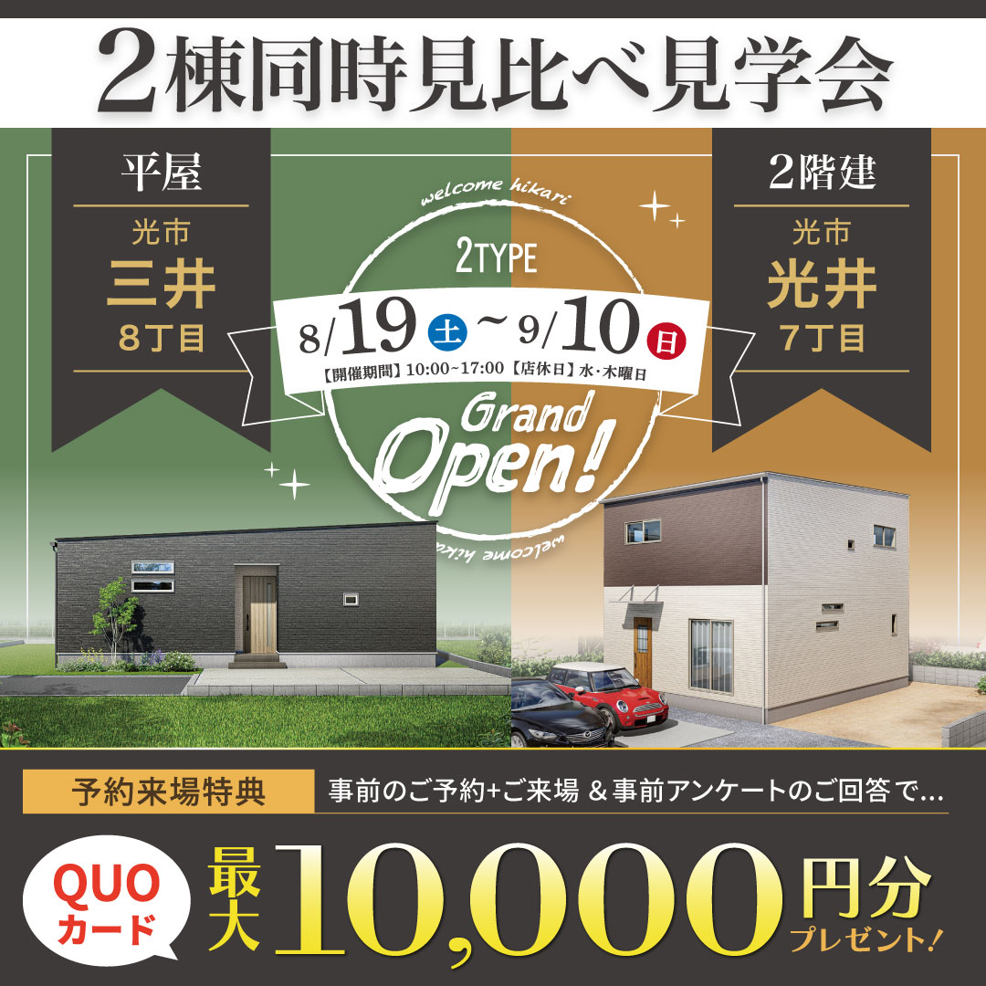 【周南店】周南市光井三井 平屋&2階建て 見比べ見学会!来場予約でクオカード1万円プレゼント