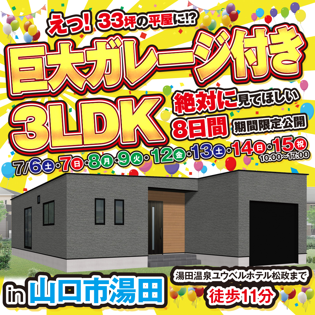 【山口市】必見のインナーガレージ!泉町で期間限定の平屋見学会!