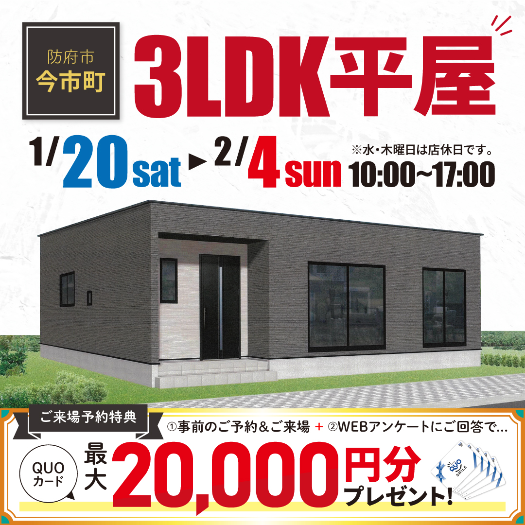 【防府市】今市平屋見学会!来場予約でクオカードプレゼント