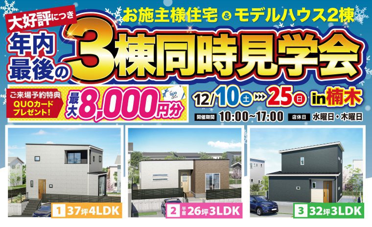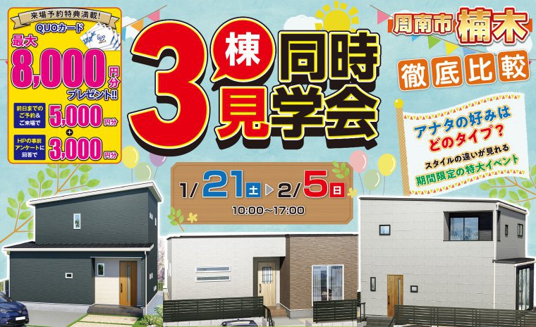 【周南市楠木】3棟同時は滅多にない!!色んなスタイルが一挙に見れる!
