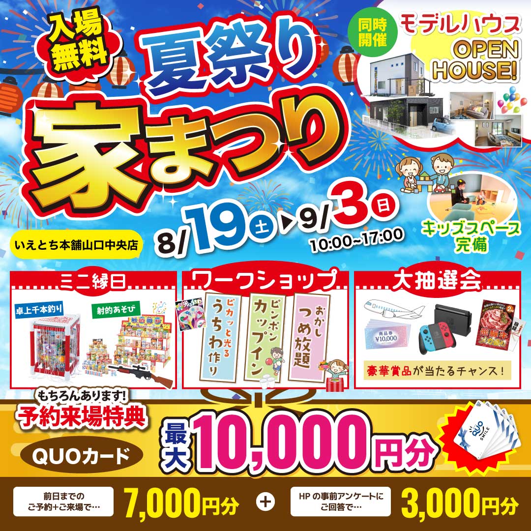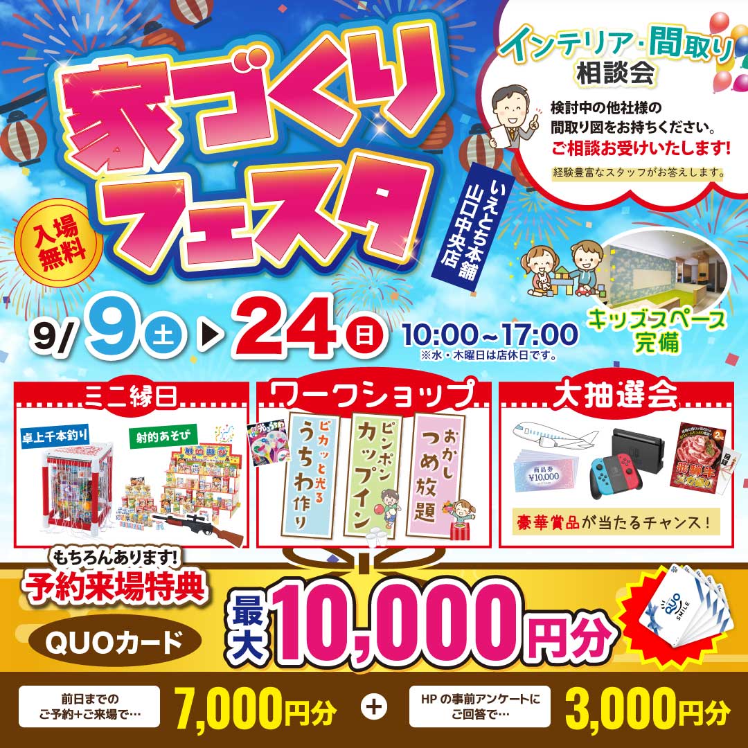 【山口店】家づくりフェスタ!来場予約でクオ1万円プレゼント!イベント盛りだくさん!