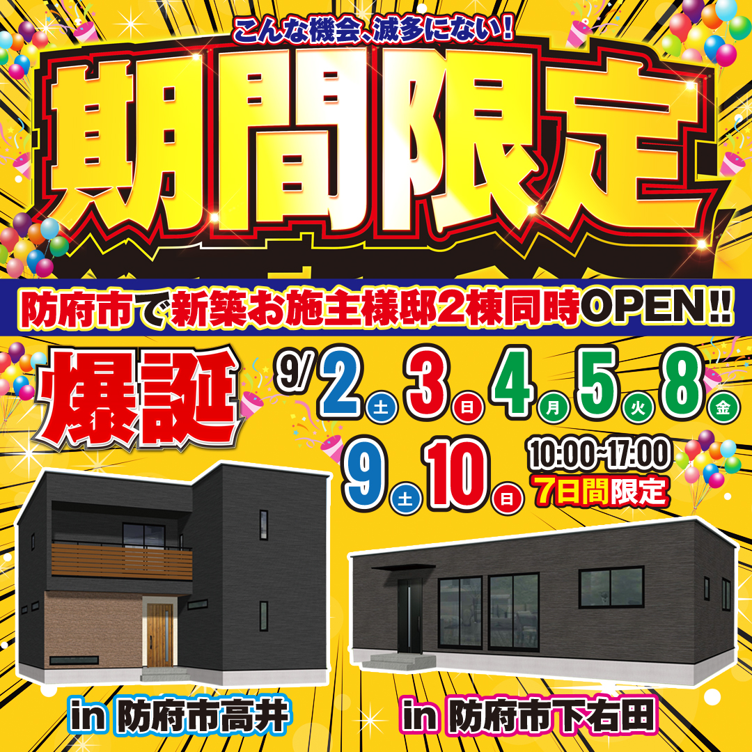 【防府市】こんな機会滅多にない!見ないと損する平屋と2階建てが期間限定で一挙公開!