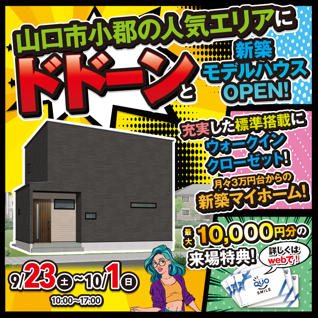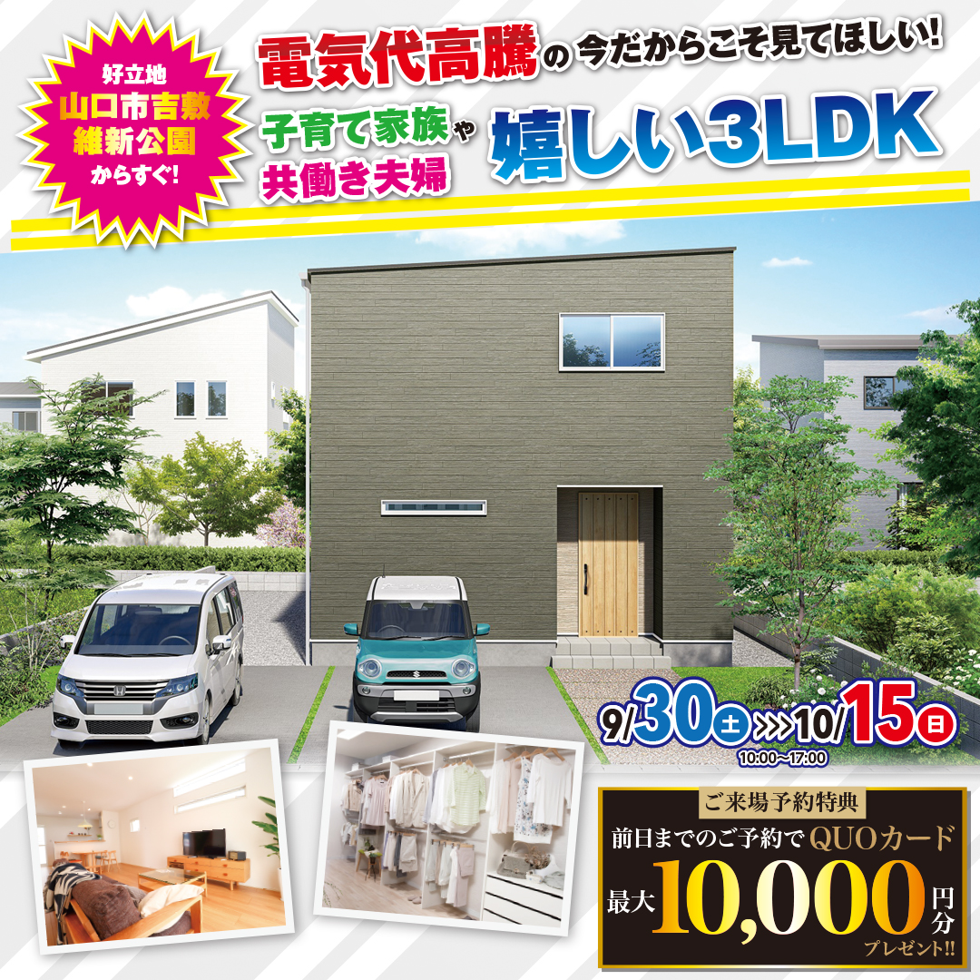 【山口市】維新公園からすぐ!今ならQUOカード最大10,000円分が貰える3LDK見学会!