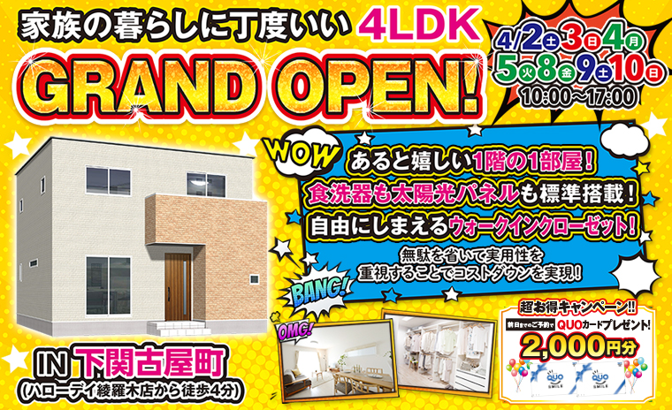 【下関古屋町】家族の暮らしに丁度いい4LDK!GRAND OPEN!