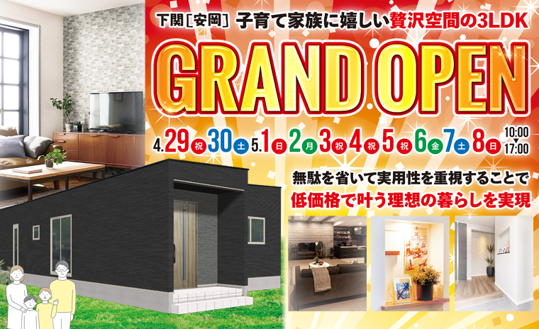 【下関市安岡】子育て家族に嬉しい贅沢3LDK GRAND OPEN!!