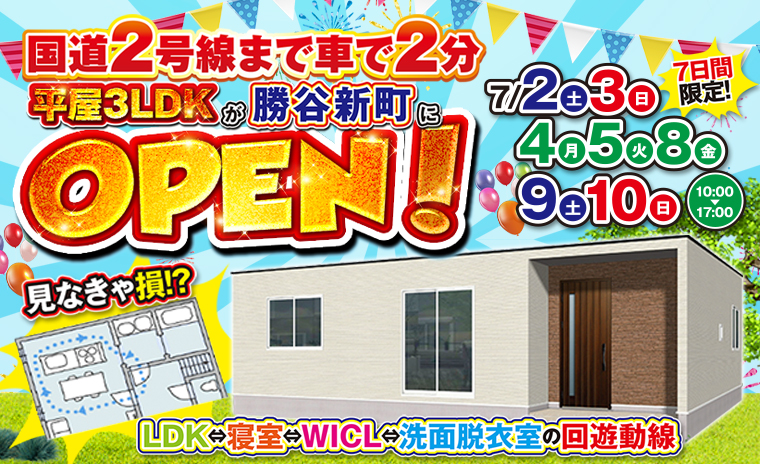 【勝谷新町】大人気の平屋OPEN!!プライベートも確保した間取りをぜひ!!