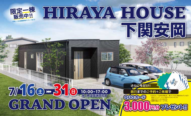 【下関市安岡】大人気の平屋が安岡に誕生!大好評につき再度公開決定!!!