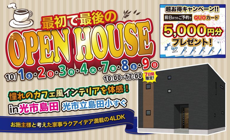 【光市島田】最初で最後のお施主様邸見学会!家事ラクの秘訣とは…?!