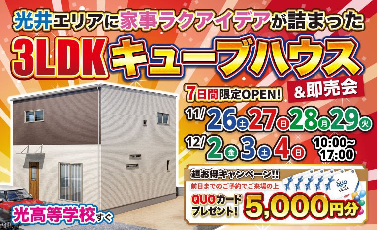 【光市光井】3LDK贅沢キューブハウス!見学&販売中!