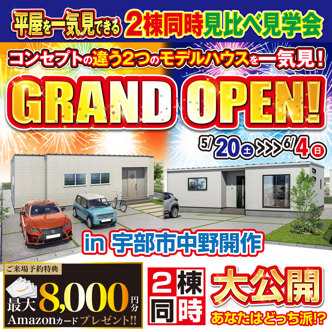 【宇部市】平屋が2棟⁉ 中野開作でモデルハウスを一気見!今だけのamazonカード8,000円分がもらえるチャンス‼