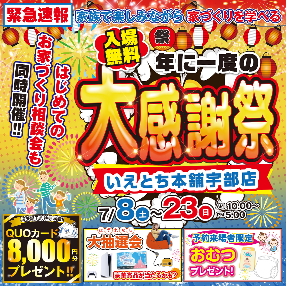 【宇部店】参加無料!ご家族で楽しみながら学べる年に一度の家づくりフェスタ!