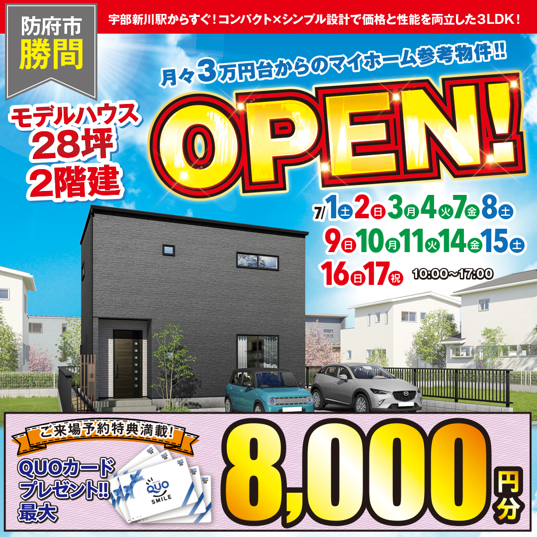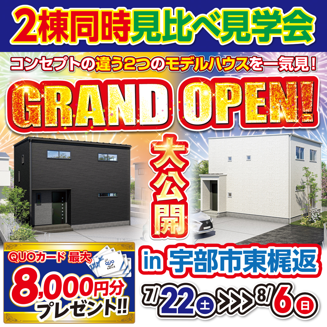 【宇部市東梶返】2階建て☆大人気モデルハウス2棟同時見学会!さらに今ならQUOカード8,000円分プレゼントキャンペーン!
