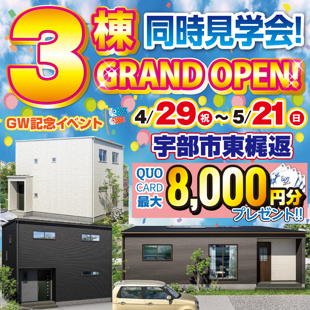 【宇部市】ついに3棟完成!GW期間中に東梶返に平屋と2階建がオープン!
