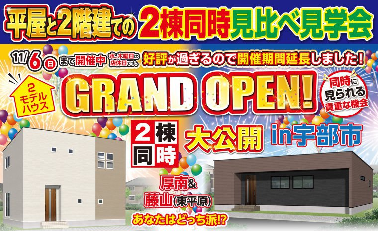 【厚南&藤山】平屋!2階建て!好評が過ぎるので見学会開催期間を11月6日まで延長!