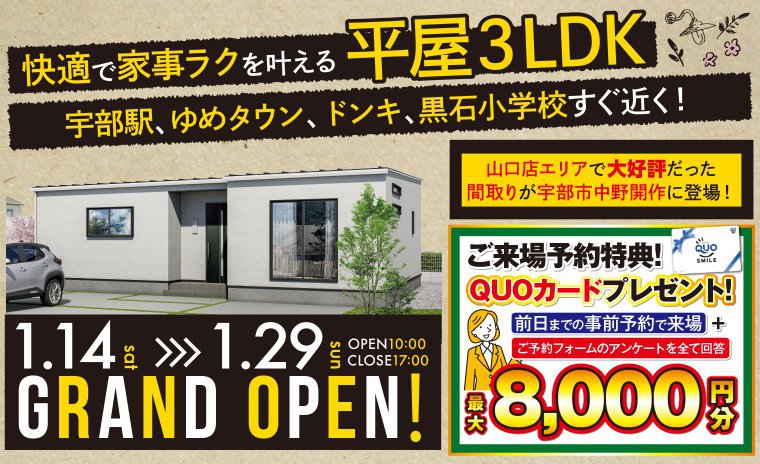 【宇部市】賃貸脱出!無理せず新築を叶えたい方に!この3LDK 平屋!!