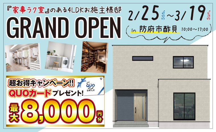 【防府市】こんな機会はめったにない!お施主様邸4LDK完成見学会!